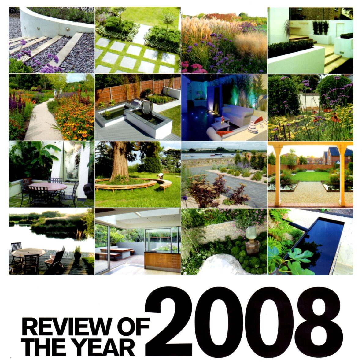 Contemporary garden with sweeping white rendered walls, stainless steel water feature and an early use of composite decking. Featured in the 2008 yearly round up of Society of Garden Designers Journal projects.