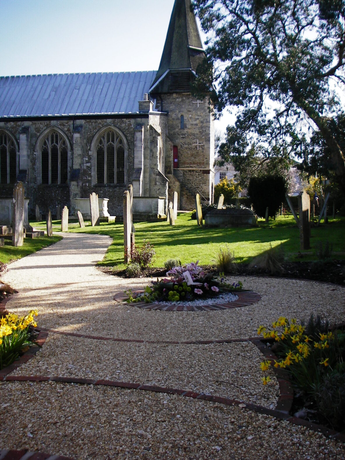 Garden of Remembrance dedicated at St Peter’s Church, Titchfield, Hampshire. This was designed to allow plaques to commemorate loved ones and a seasonal array of planting to lift the spirits. An almond tree provides early season blossom and has references to gardens within the Bible.